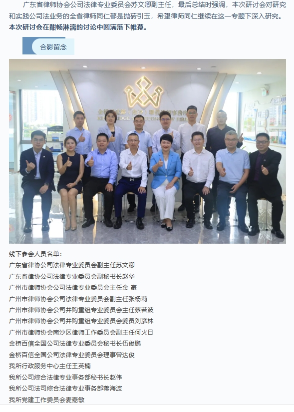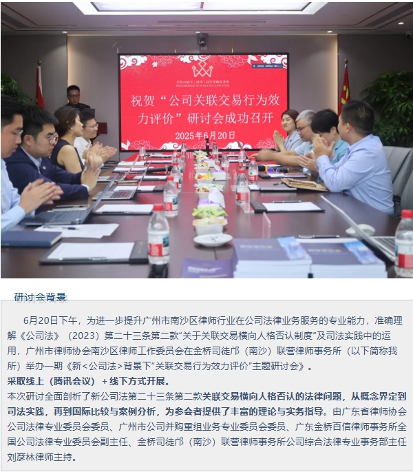 金桥司徒邝动态|祝贺“公司关联交易行为效力评价”研讨会成功召开