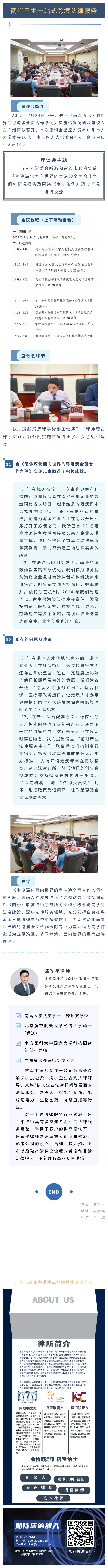 金桥司徒邝动态 | 我所焦军平律师应邀出席关于《南沙深化面向世界的粤港澳全面合作条例》实施情况座谈交流会