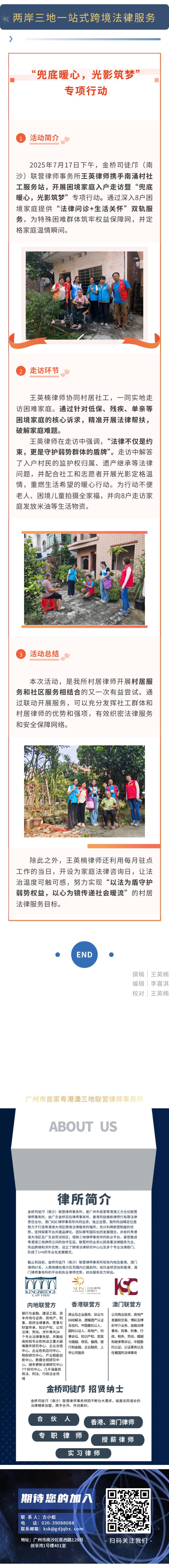 我所王英楠律师联合东涌镇南涌村社工站开展“平安一夏、少年护航”安全守护行动,筑牢困境家庭安全防线...