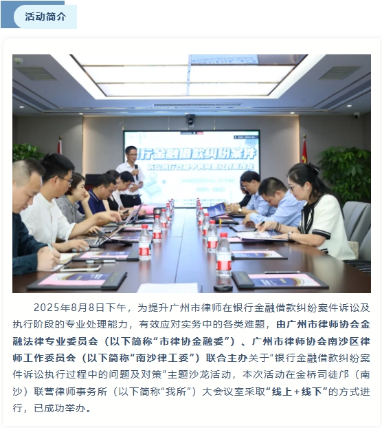 广州律协金融法律专业委、南沙律工委在我所成功举办“金融法律实务”沙龙活动