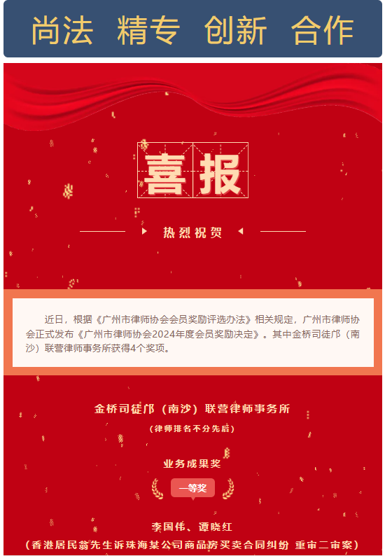 金桥司徒邝喜讯|我所律师荣获广州市律师协会2024年度奖项