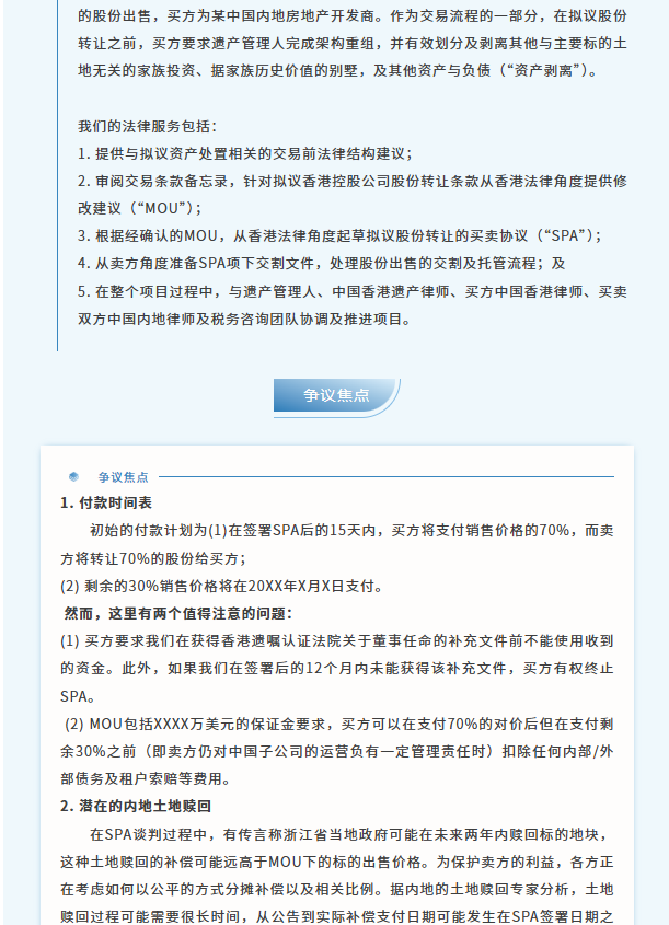 KSK跨境案例|《担任某高净值家族的香港法律顾问,协助以出售香港控股公司股权形式间接出售内地土地》
