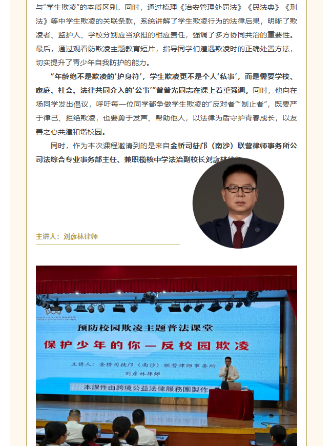 金桥司徒邝公益 | 广州市南沙区榄核中学开学季第一堂法治课 --“保护少年的你—反校园欺凌”