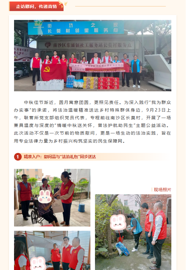 金桥司徒邝党支部动态 | 联营所党支部赴南沙区长莫村开展中秋慰问暨法治下乡活动