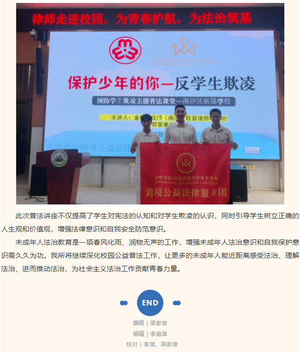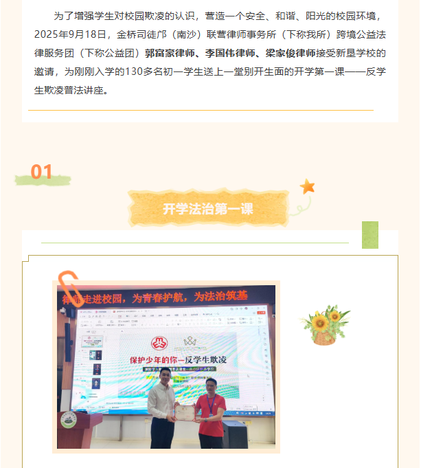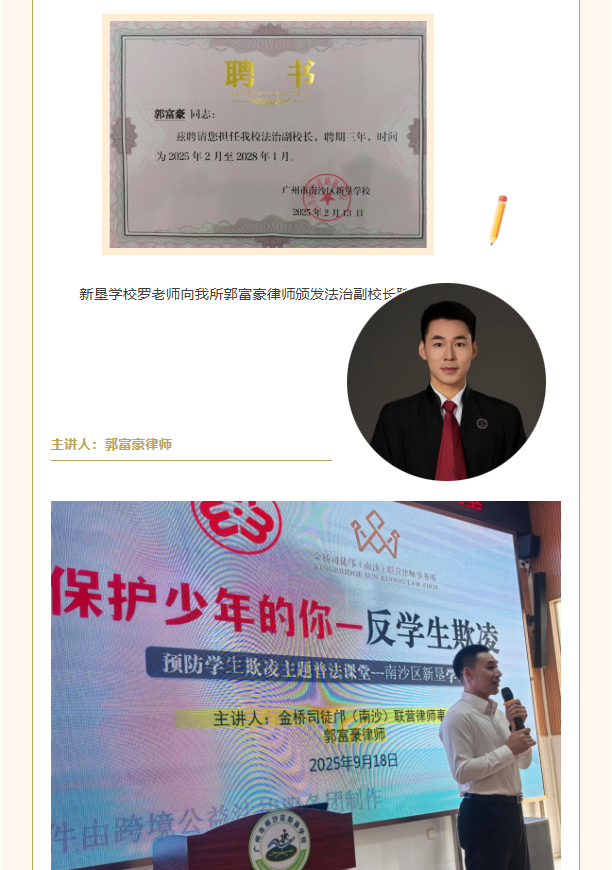 金桥司徒邝公益|我所郭富豪律师受聘新垦学校法治副校长,并开展“开学法治第一课”授课