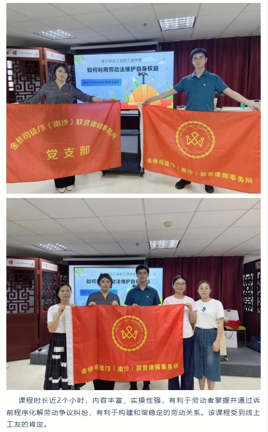 金桥司徒邝动态|我所李楚泽律师受邀南沙街总工会开展“职工慧学堂”线上授课