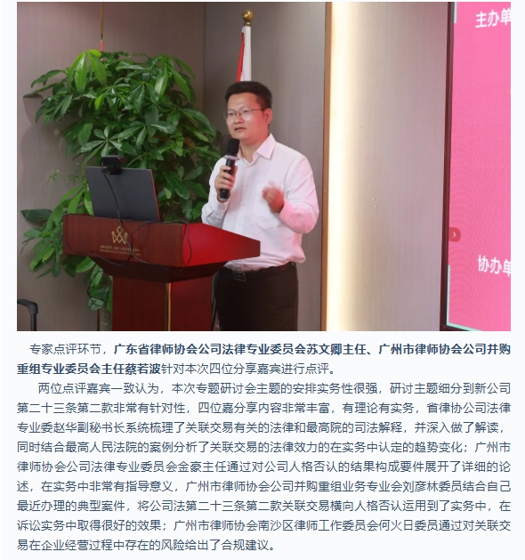 金桥司徒邝动态|祝贺“公司关联交易行为效力评价”研讨会成功召开