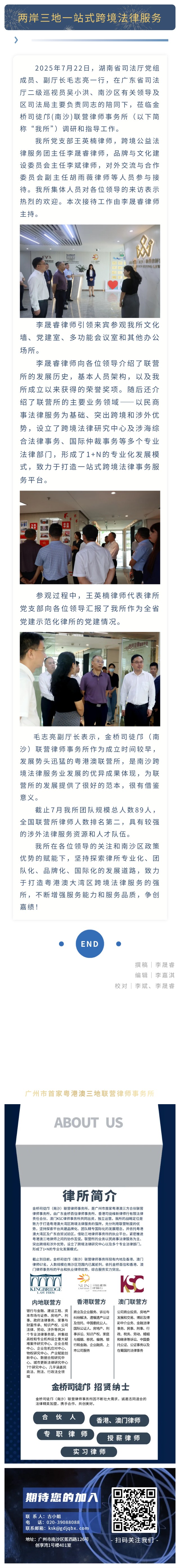 金桥司徒邝动态|湖南省依法治省办调研组以及广东省委依法治省办、广州市委依法治市办一行莅临我所参观调研