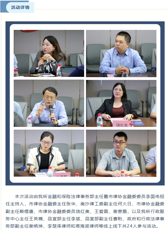 广州律协金融法律专业委、南沙律工委在我所成功举办“金融法律实务”沙龙活动