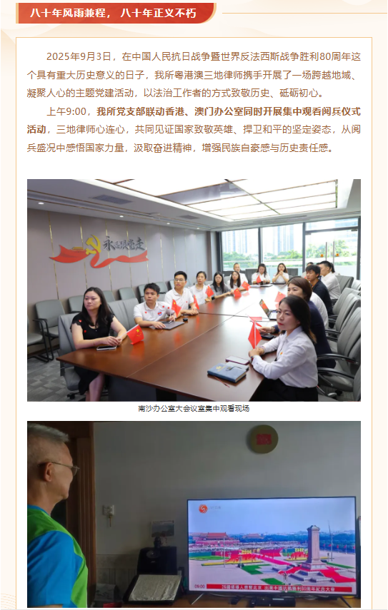 粤港澳三地同心·共铸法治荣光|我所成功举办抗战胜利80周年主题党建活动