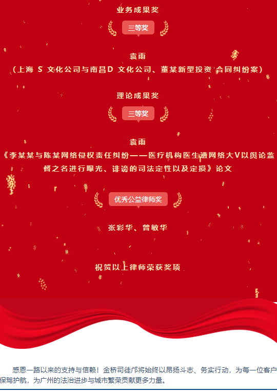 金桥司徒邝喜讯|我所律师荣获广州市律师协会2024年度奖项