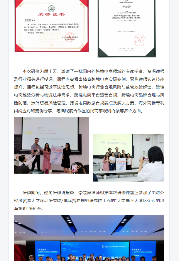 喜讯 | 我所李楚泽律师参加广东省涉外律师人才研修班 并获评“优秀班委”
