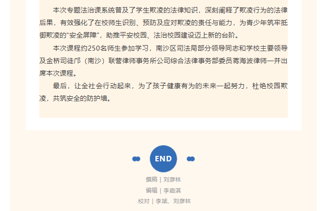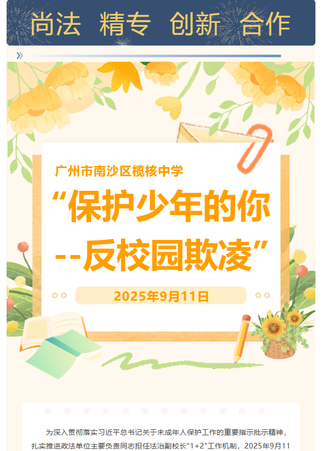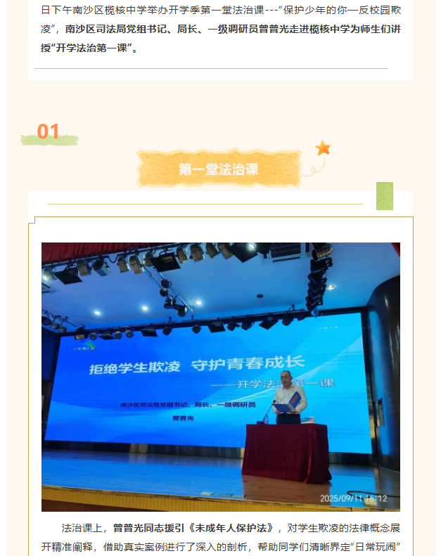 金桥司徒邝公益 | 广州市南沙区榄核中学开学季第一堂法治课 --“保护少年的你—反校园欺凌”