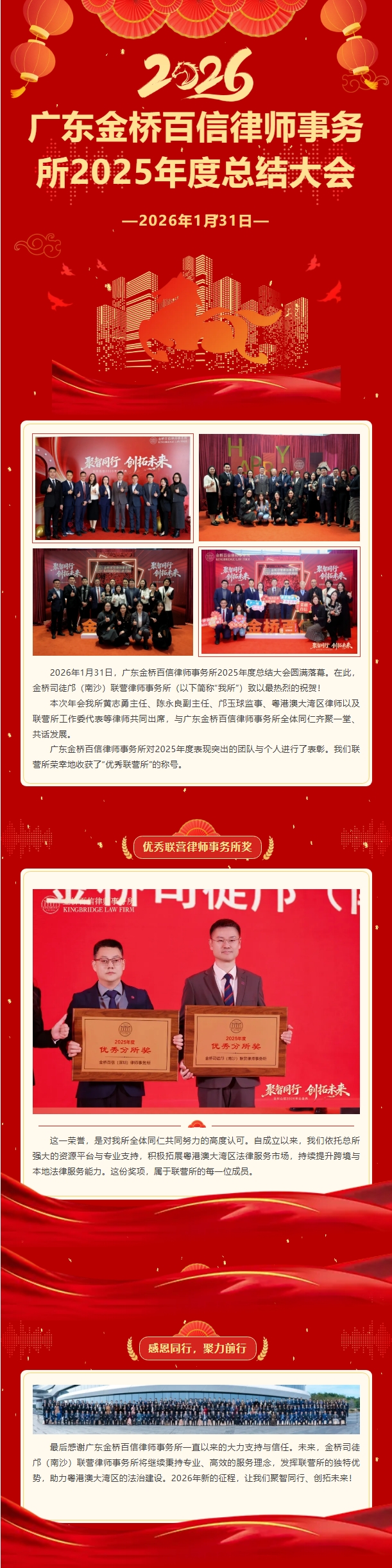 喜讯 | 我所荣获广东金桥百信律师事务所“2025年度优秀联营所”称号
