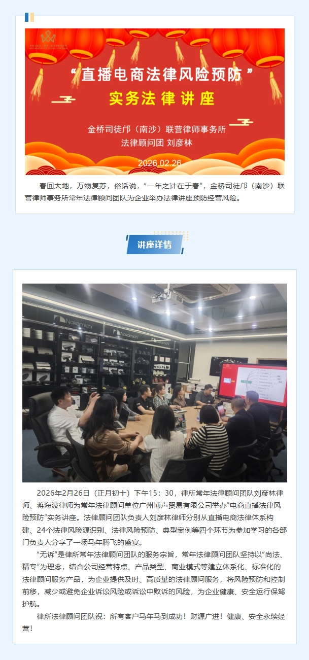 动态┃ 律所常年法律顾问团队刘彦林律师为企业举办“电商直播法律风险预防”实务讲座
