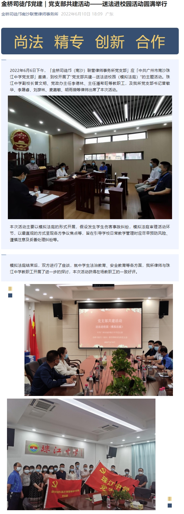 金桥司徒邝动态|与企业心连心,“法治体检”公益活动进行企业讲座