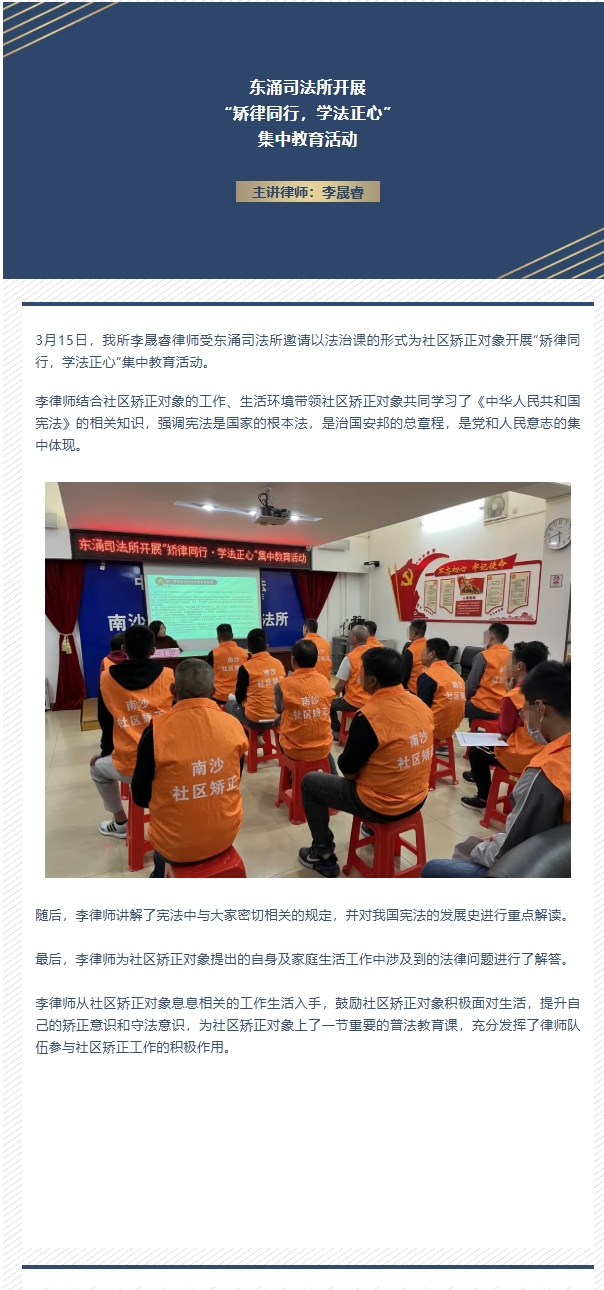 金桥司徒邝法治宣传 | 我所李晟睿律师为社区矫正对象开展“矫律同行,学法正心”集中教育活动