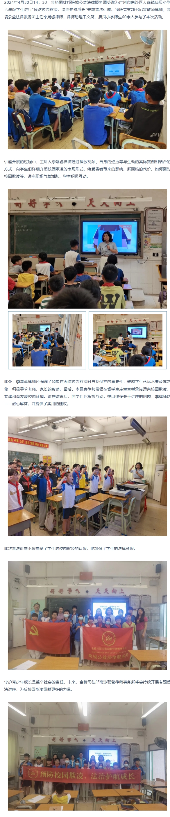 金桥司徒邝公益 | “预防校园欺凌,法治护航成长”走进校园专题普法讲座——庙贝小学