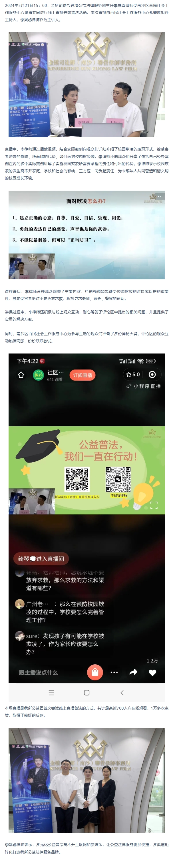 金桥司徒邝公益 | “反校园欺凌”线上直播普法活动在我所成功举行