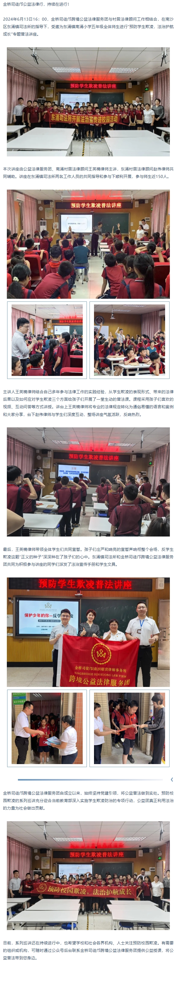 金桥司徒邝公益 | “预防校园欺凌,法治护航成长”走进校园专题普法讲座——东涌第一小学...