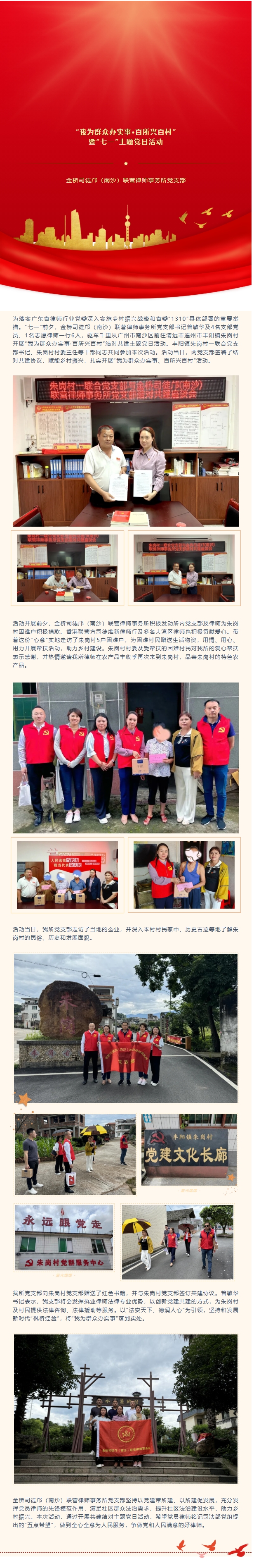 金桥司徒邝党建 | 金桥司徒邝(南沙)联营律师事务所党支部开展“我为群众办实事·百所兴百村”暨“七一”主题党日活动