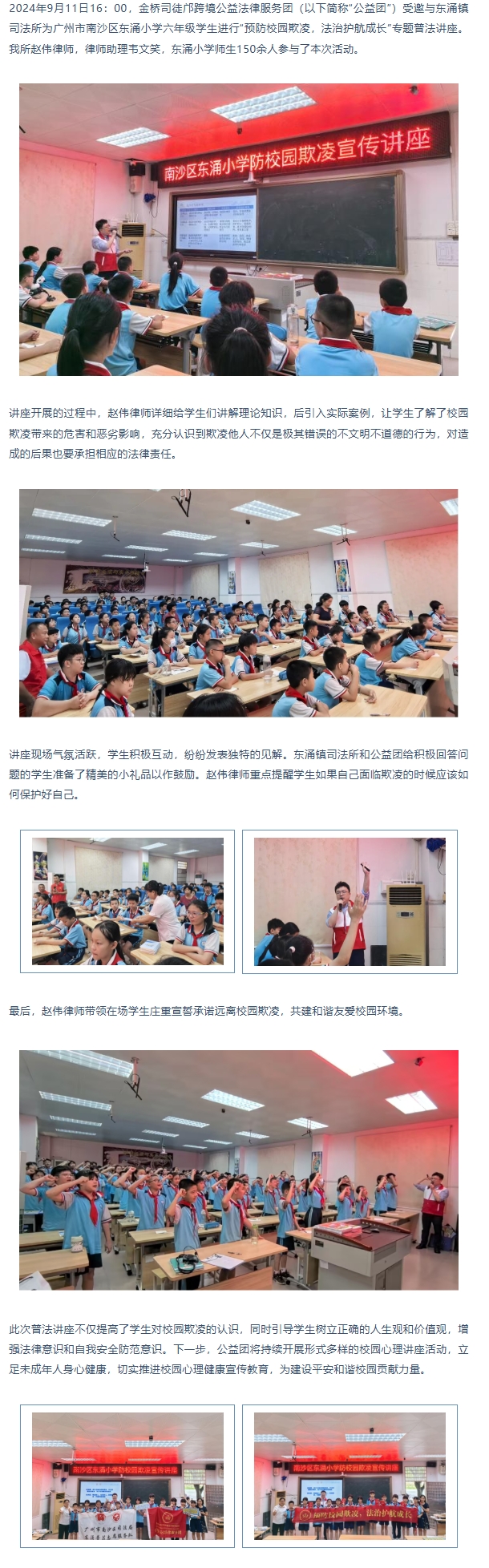 金桥司徒邝公益 | “预防校园欺凌,法治护航成长”走进校园专题普法讲座——东涌小学