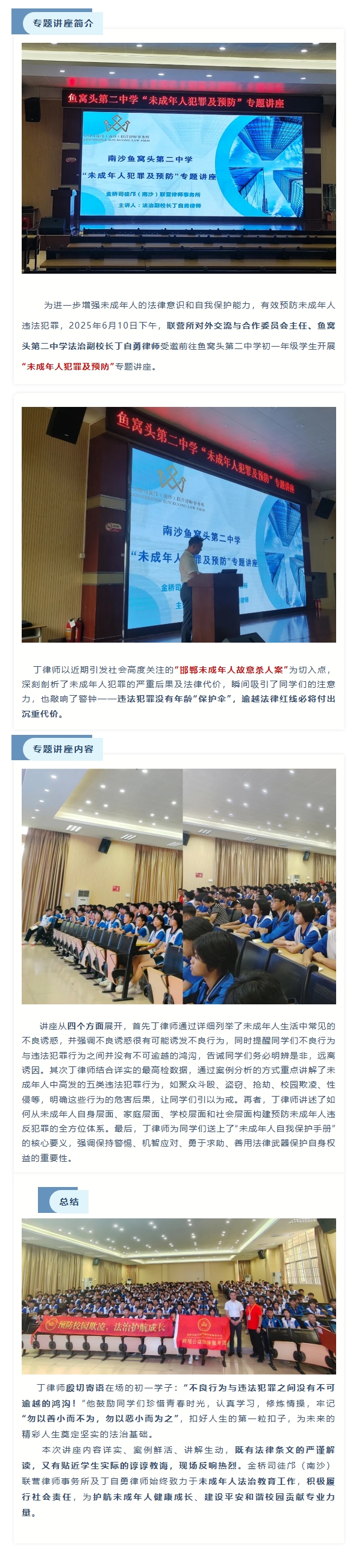 金桥司徒邝公益 | 我所丁自勇律师受邀前往鱼窝头第二中学开展“未成年人犯罪及预防”专题讲座