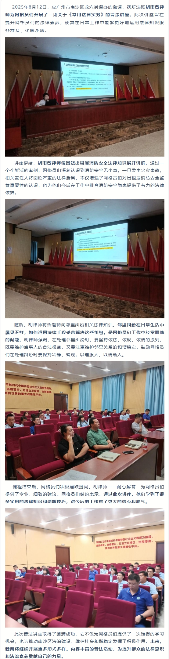 金桥司徒邝公益|我所胡雨薇律师受邀在南沙区龙穴街道开展普法讲座:为网格员赋能,筑牢法治根基