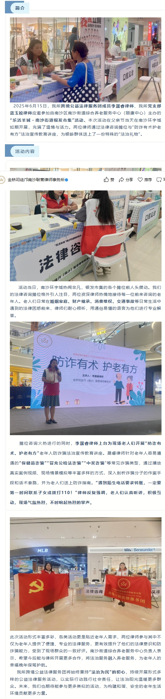 金桥司徒邝公益|我所跨境公益法律服务团助力南沙街道银发市集火热进行
