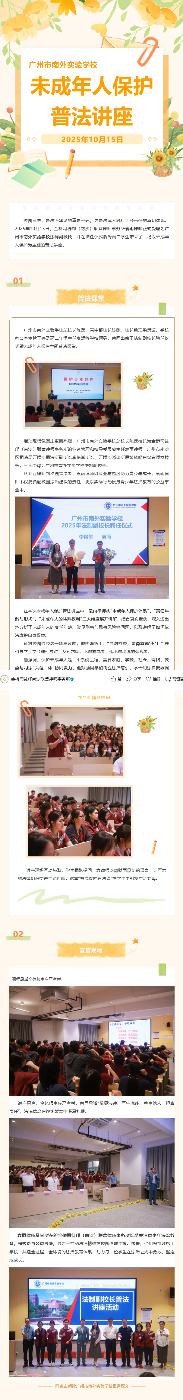 公益|袁雨律师受聘为广州市南外实验学校法制副校长并开展未成年人保护讲座