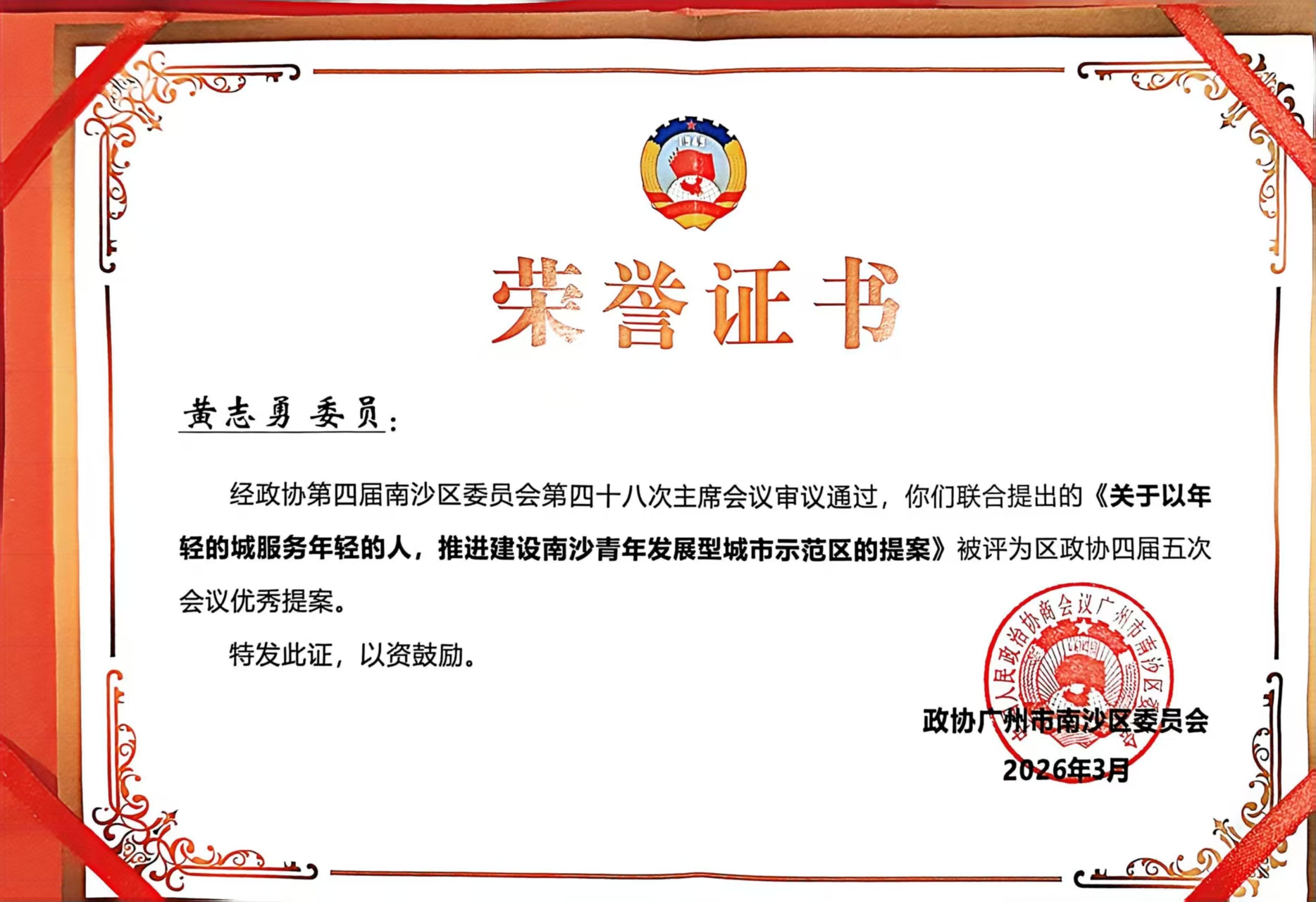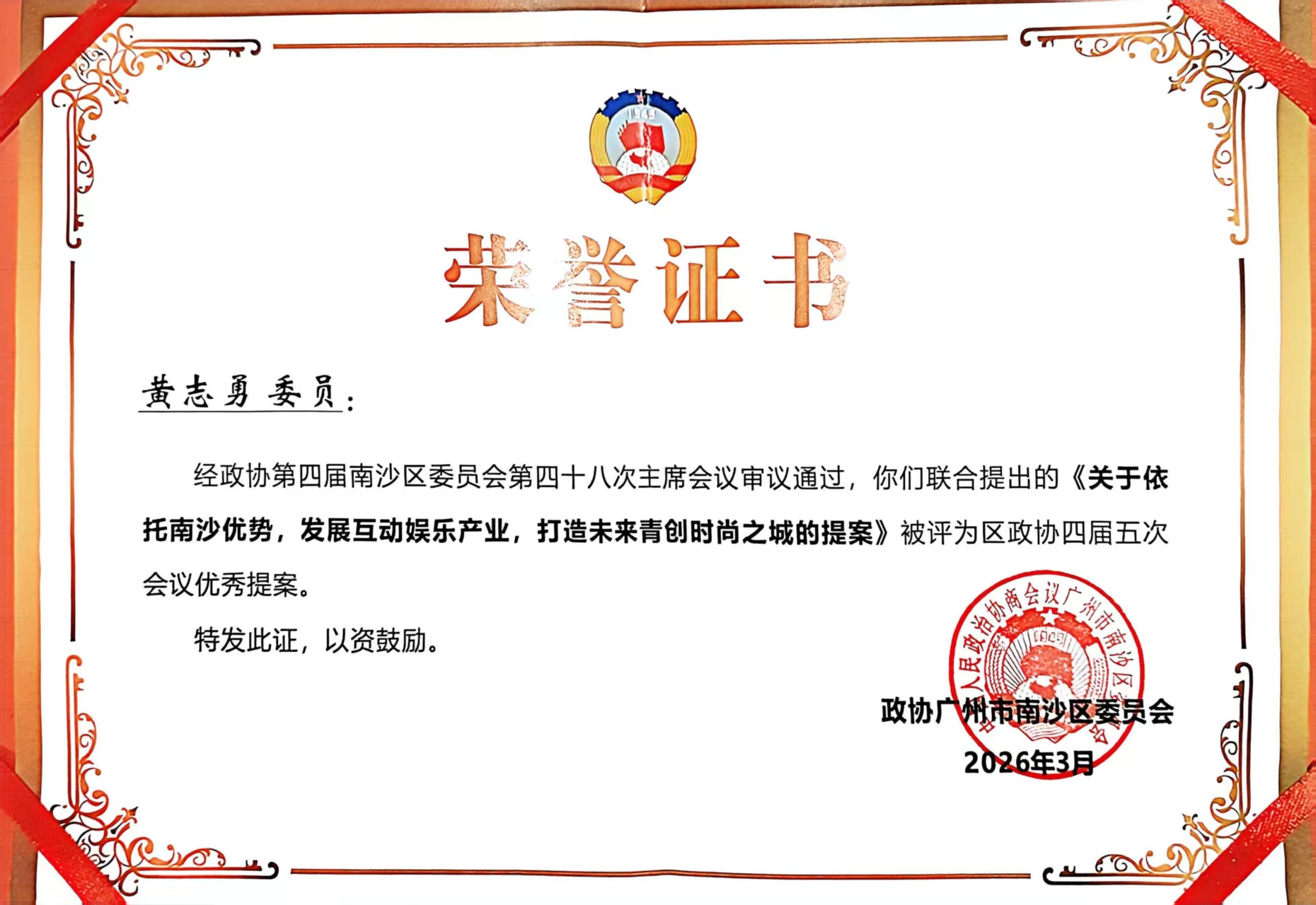 两项提案紧扣南沙发展大局,分别聚焦互动娱乐产业培育与青年发展型城市建设,体现了对区域经济新增长点和青年人才生态的深度思考与务实建议,获得了大会的高度认可。