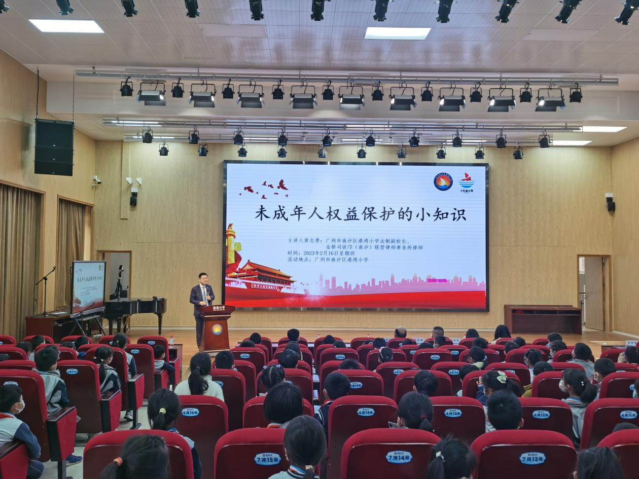 2023年2月16日下午,我所黄志勇律师作为广州市南沙区港湾小学的法制副校长,应学校邀请,为200多名学生开展关于“未成年人权益保护”的专题讲座。