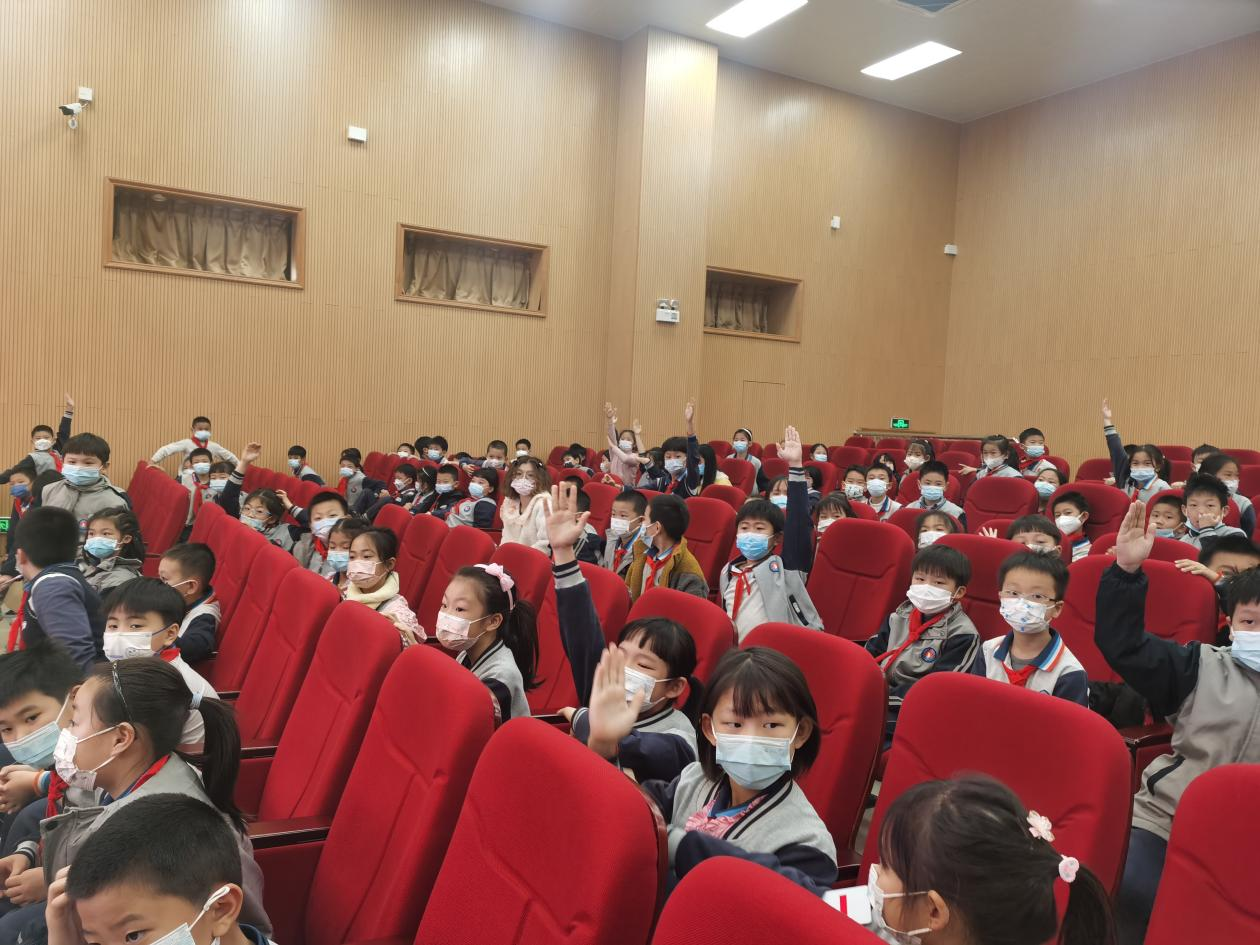 有奖竞答环节中,学生们争先恐后地回答问题,别看年纪小,想法也不少。讲座现场气氛非常热闹。