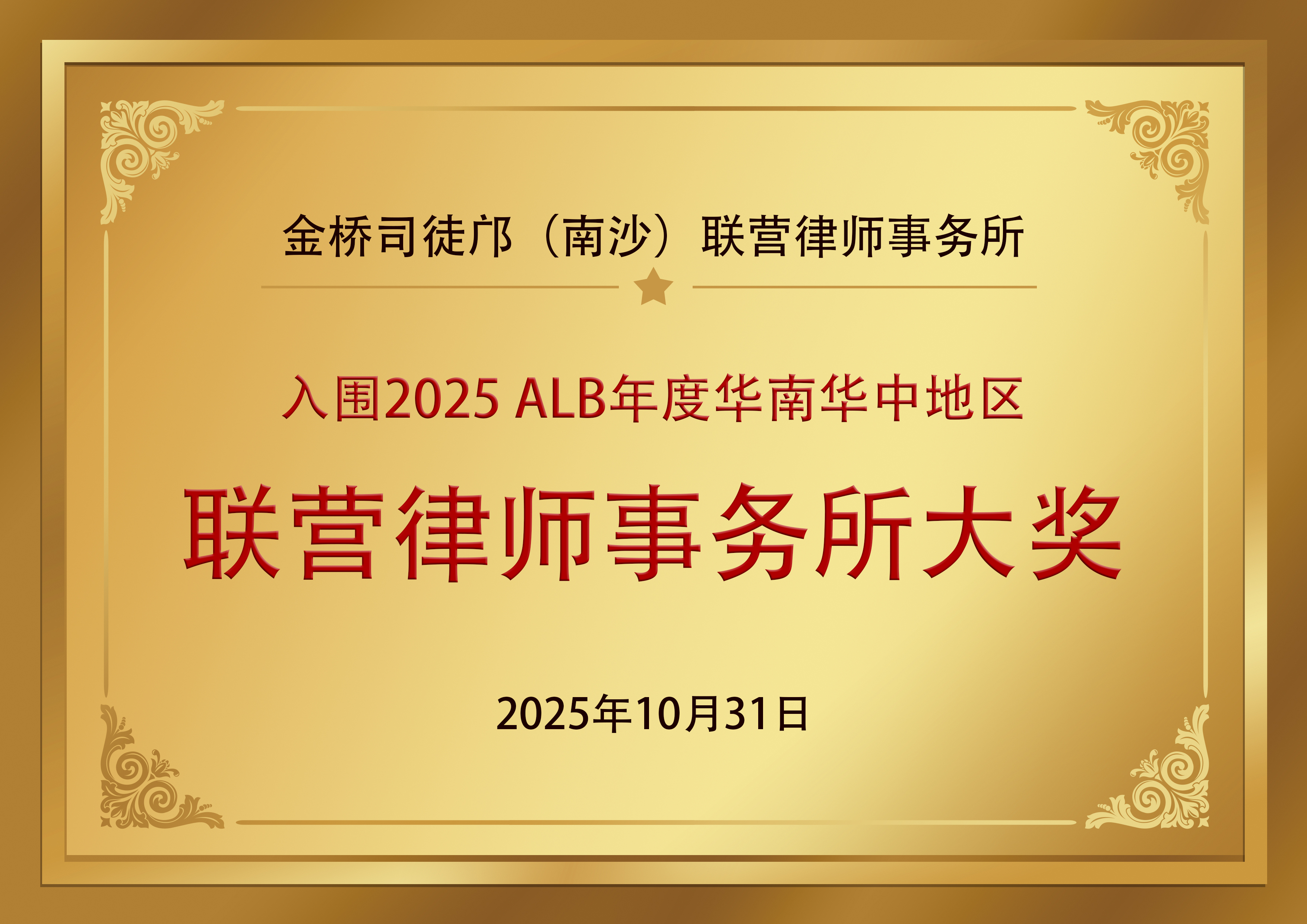 2025年10月1日 联营所入围2025 ALB年度华南华中地区联营律师事务所大奖提名