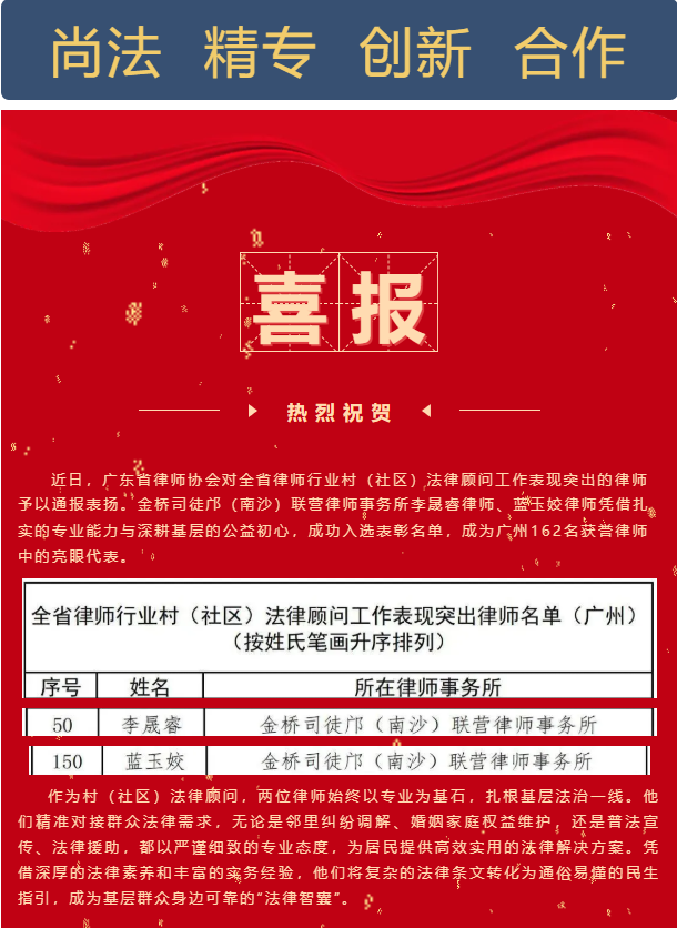 我所李晟睿、蓝玉姣律师获省律协通报表扬,以专业之力践行公益担当