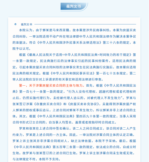 《马来西亚公民房屋被无权处理 ——法院判决由无权代理人按比例承担责任》