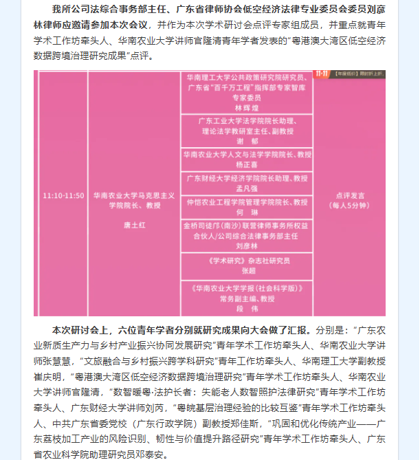 低空经济┃我所刘彦林律师应邀参加广东省社科联青年学术工作坊“农业新质生产力与乡村产业振兴的协同发展研究”学术研讨会