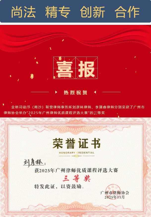 祝贺┃我所刘彦林律师、李晟睿律师分别荣获2025年广州律师优质课程评选大赛的三等奖