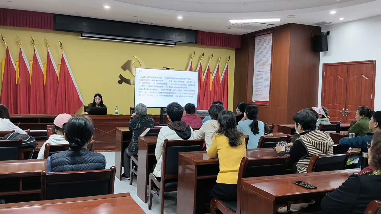讲座以“房子怎么分”、“挥霍财产怎么追回”、“子女抚养费怎么算”等热点问题为切入,深入浅出地解析具体法律条文,回答了居民们关心的婚姻关系及财产问题。
