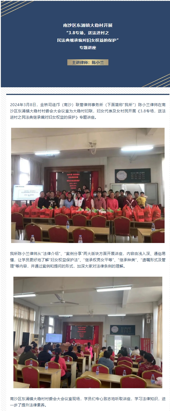 金桥司徒邝法治宣传 | 我所陈小兰律师开展“3.8专场,送法进村之民法典继承编对妇女权益的保护”专题讲座
