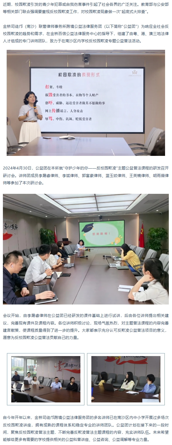 金桥司徒邝公益 | “反校园欺凌”公益普法主题课程研讨