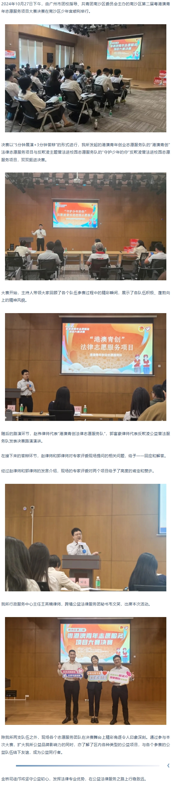 金桥司徒邝公益 | 祝贺南沙区第二届粤港澳青年志愿服务项目大赛决赛顺利举行