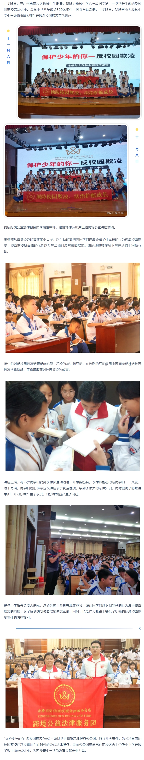 金桥司徒邝公益 | 我所助力2024年东涌镇“宪法宣传周”系列活动暨 “反学生欺凌”普法讲座—鱼窝头第二中学...