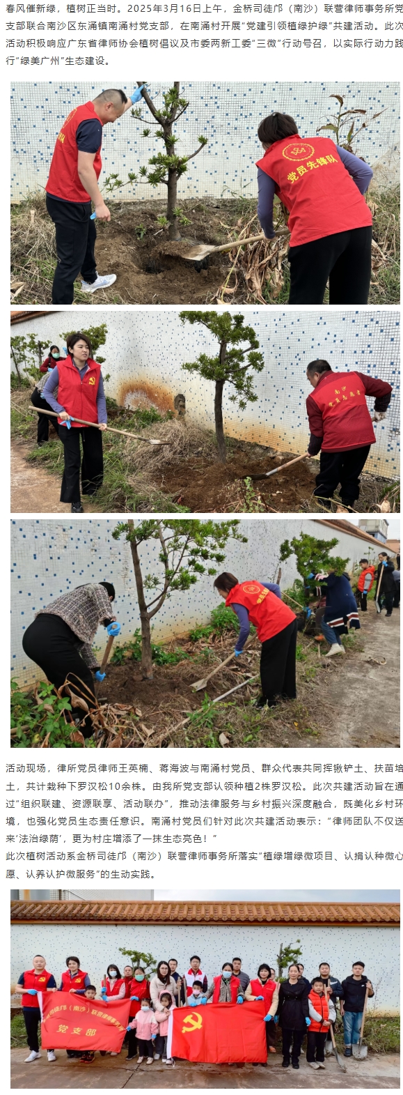 金桥司徒邝动态 |我所党支部与南涌村党支部开展共建植树活动,践行“三微”行动助力绿美广州