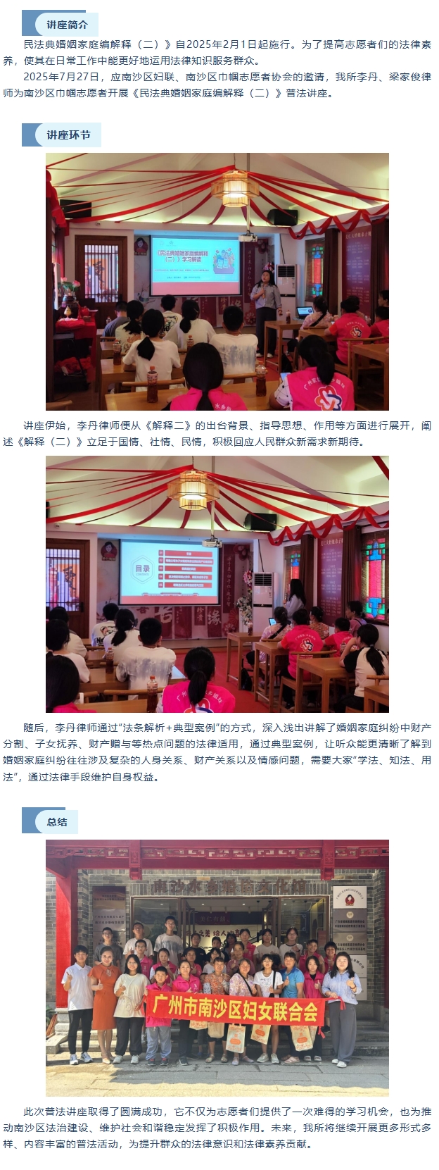 金桥司徒邝普法|李丹律师受邀为南沙区巾帼志愿者协会开展《民法典婚姻家庭编解释(二)》普法讲座