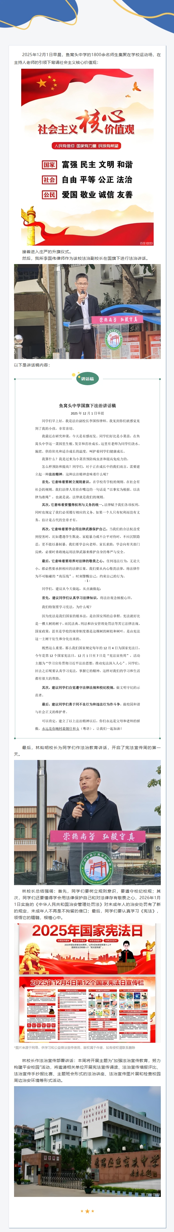 公益 |法治副校长履职•李国伟律师在广州市南沙鱼窝头中学国旗下法治讲话